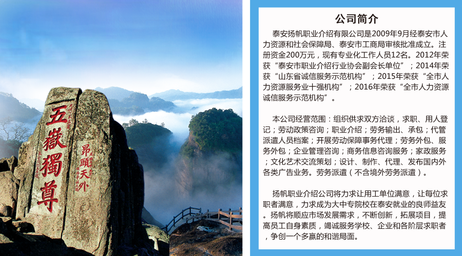 1、泰安揚帆職業介紹有限公司某國有企業招聘,詳情請看下方第一個公告